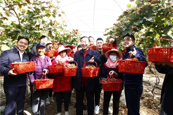 隨后小分隊來到敦厚村的葡萄種植大棚,豐收果實、高掛枝頭,志愿者與種植農(nóng)戶一起采摘葡萄,共話鄉(xiāng)村振興、扶貧攻堅、增產(chǎn)增收,葡萄大棚中滿是喜悅的笑聲。